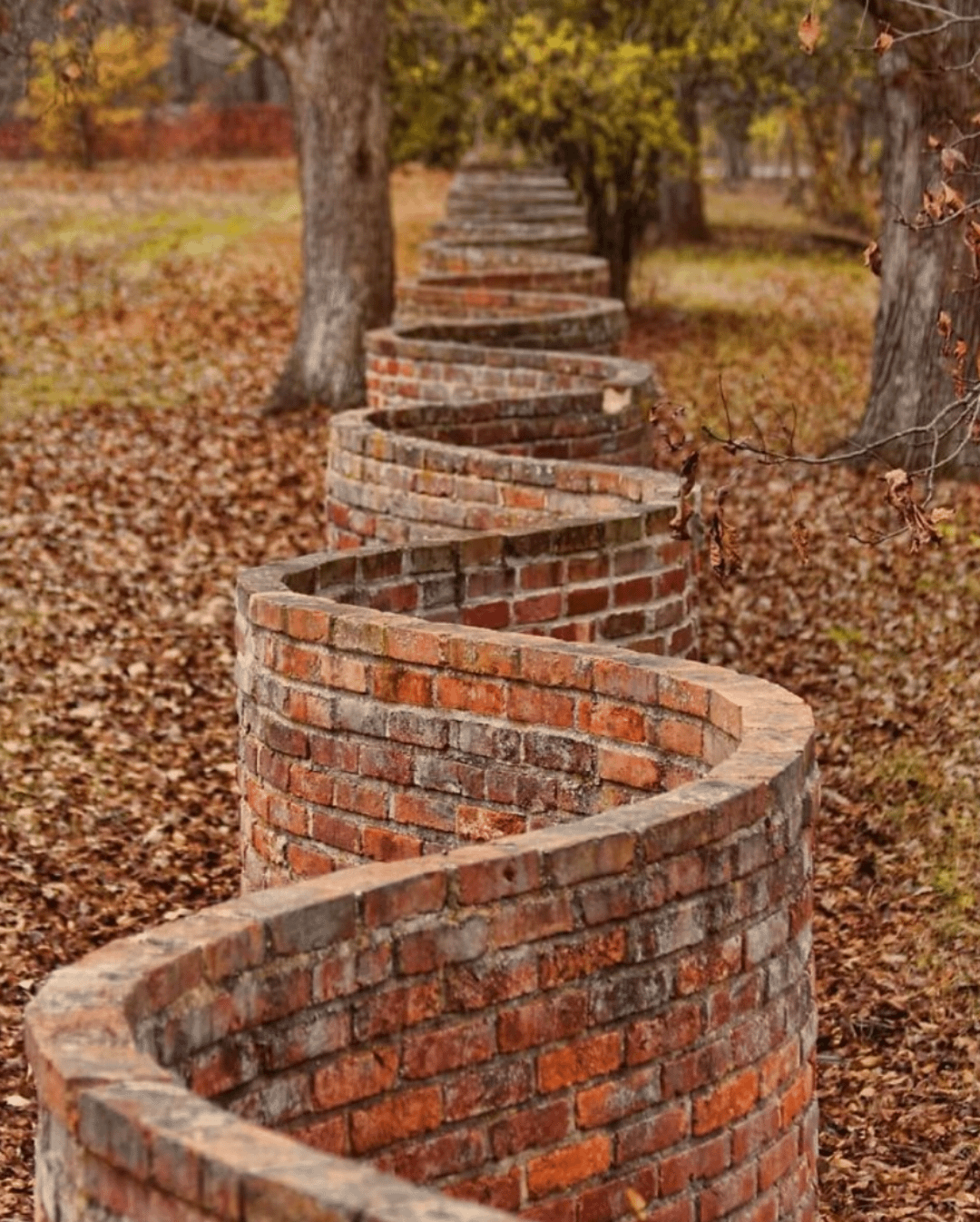 These are found in England, mostly in Suffolk They are usually the boundaries of a large private house.[This is the Wikipedia article](https://en.wikipedia.org/wiki/Crinkle_crankle_wall). The first picture, taken in Bramfield, is about 5 miles from where my late parents lived. I’ve driven past it quite a few times.