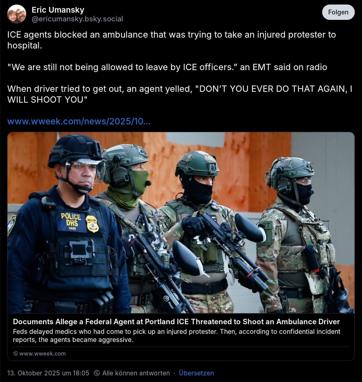 Does anyone have a link or any more information? My specific questions are: how long were they made to wait? Was there any explanation for being made to wait? Did it seem like ICE was holding the ambulance as a punitive measure because they were upset with protesters? Was the patient in the ambulance ok?