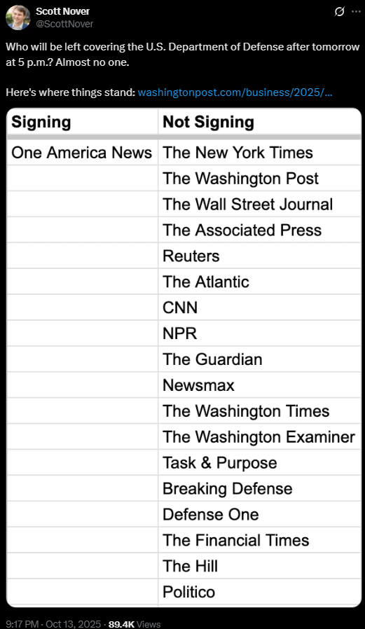 Even MAGA news stations are refusing to sign the Department of Defense agreement limiting what they can report on. by justalazygamer