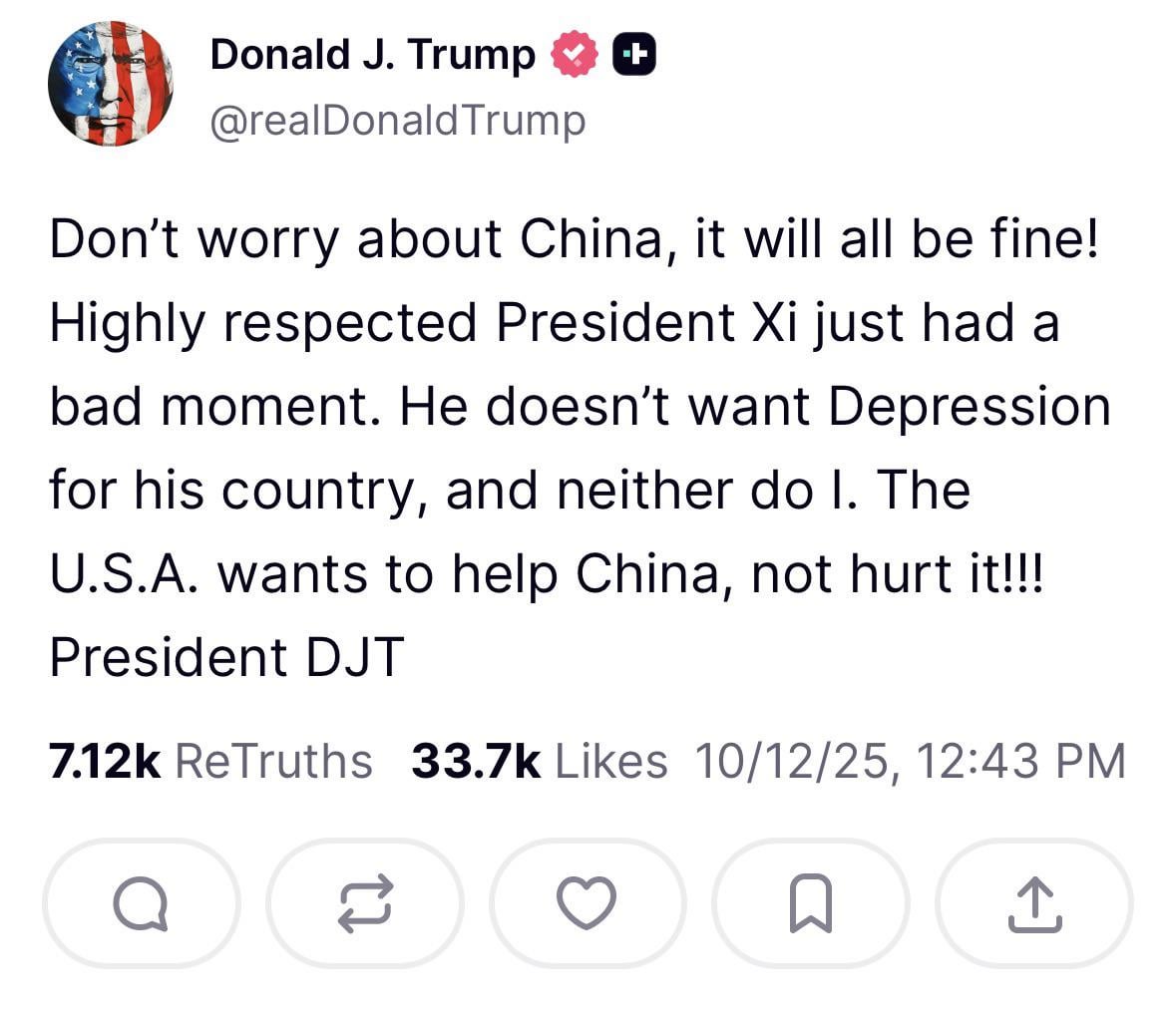 3. Trump doesn’t want depression for china? How much did Xi pay him to say that #8647 #EpsteinFiles #taco #vote #VoreThemOut