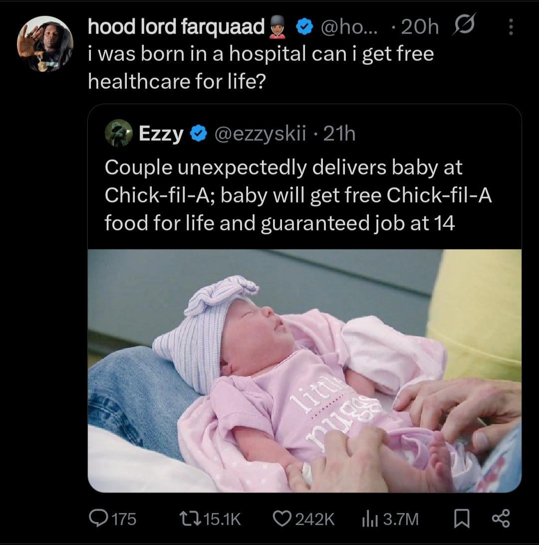 Priorities in America: Chicken sandwiches > Life-saving medicine. Clear enough.
