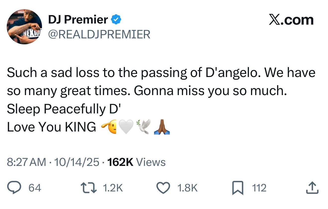 Explains why he suddenly canceled his Roots Picnic show. RIP. Helped push Neo-Soul to the forefront and one of the greatest to ever do it