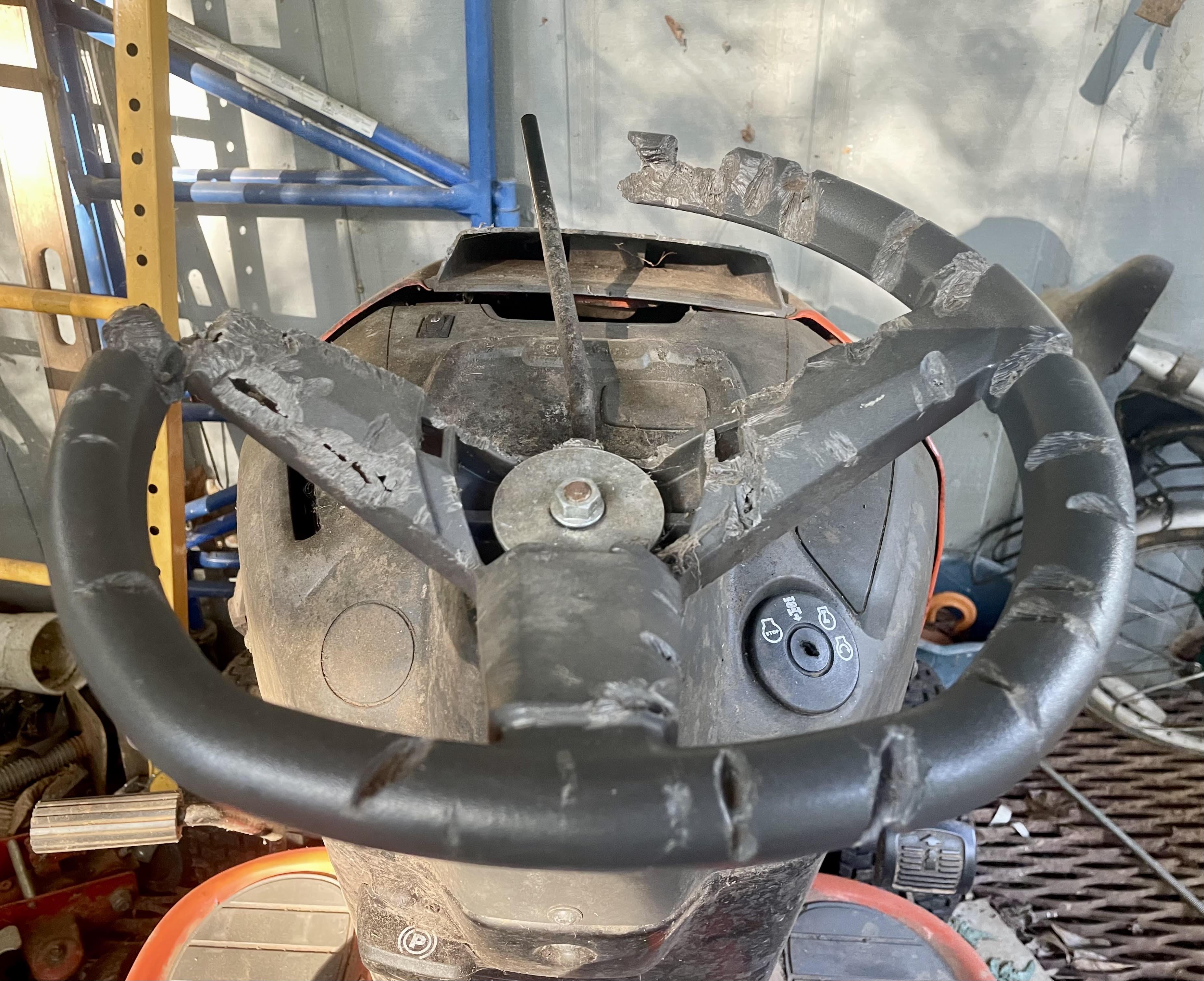All of those divots you see around the steering wheel are bite marks, so the whole thing is going to break apart at some point.