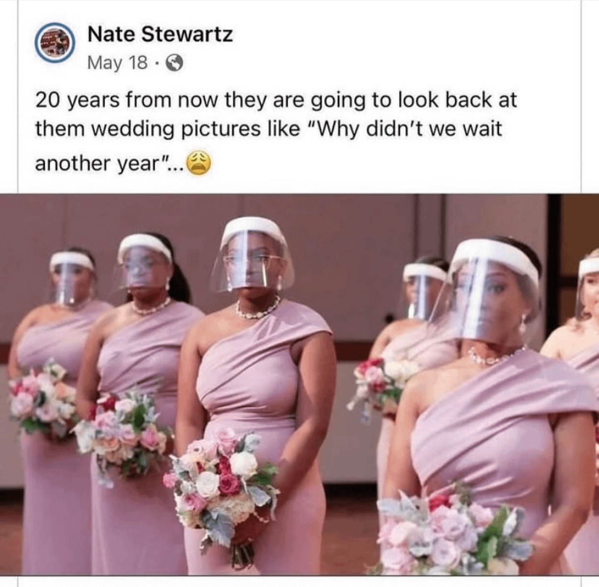 Had a wedding right after the lockdowns started. No masks and everyone was there. Everyone took photos like normal and no one reported getting sick. About 200 guests.