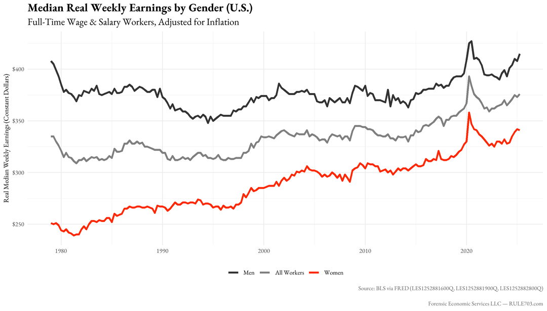 Data: BLS via FRED (LES1252881600Q, LES1252881900Q, LES1252882800Q)