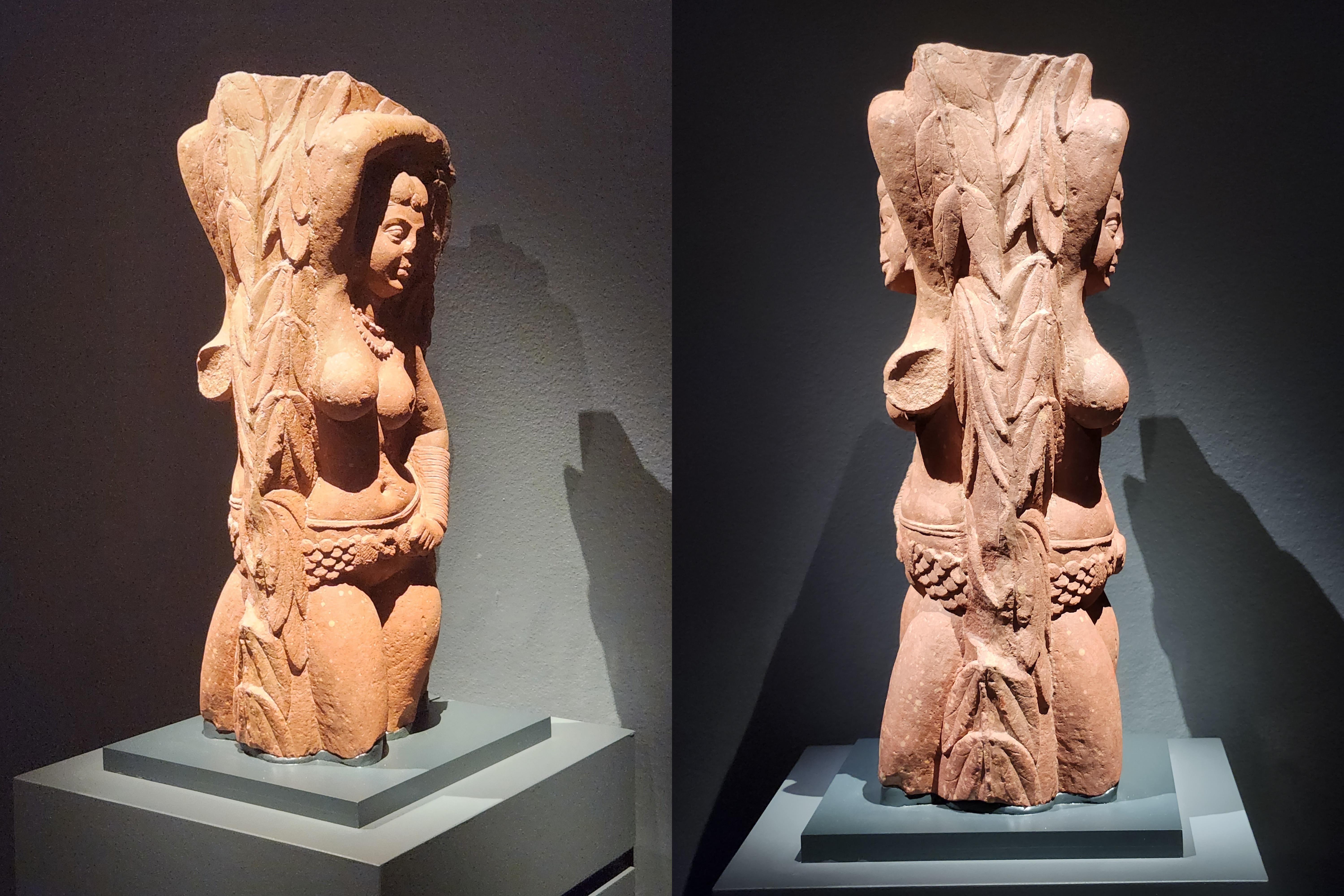 Tree spirit (yakshi salabhanjika). Mathura, Uttar Pradesh, India, 2nd c AD (Kushan dynasty), reportedly from a Jain shrine. Mottled red sandstone. Loaned to the Metropolitan Museum of Art from the Victoria and Albert Museum [6000×4000] [OC]