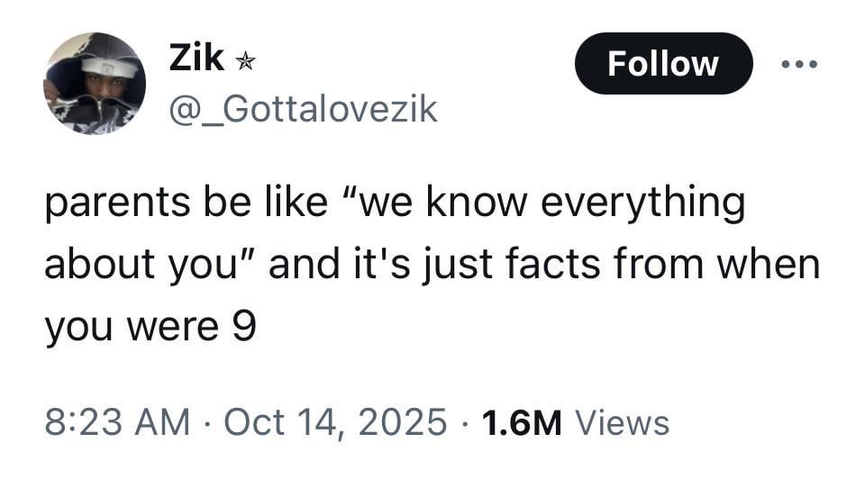My parents know less about me than I know about some of **yall**. Just outdated, half-remembered bs lol. They mean well but they were not of the “one of your lil friends” generation.