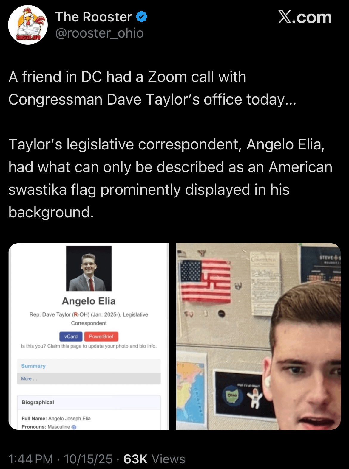Also, damn word travels fast. Wikipedia already updated (https://en.wikipedia.org/wiki/David_Taylor_(Ohio_politician)). I wonder if they’re fire this kid, distance themselves, and hire a more discrete Nazi.