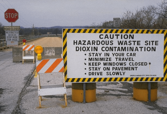 1. If I recall correctly Russell Bliss was the guy who was paid to dispose of waste oil from a factory and then sprayed it all over the dirt roads in Times Beach to keep the dust down. I grew up a few miles from here and witnessed the whole process – from seeing the small town, to witnessing men in full-body hazmat suits walking around, to seeing the town abandoned, then demolished, then leveled. They took a few feet of topsoil and now it’s a park I think.