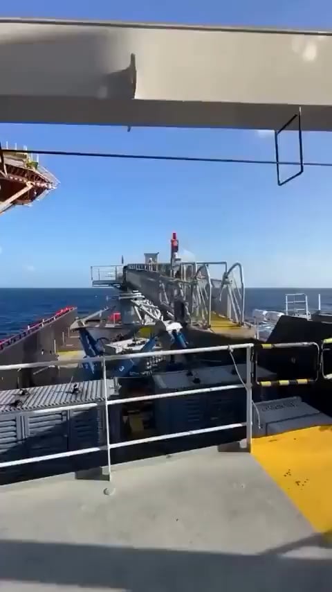 Video of a Stewart platform allowing the crew to safely transfer from an oil rig to a ship. The footage is accelerated to show the effect of the system better.
