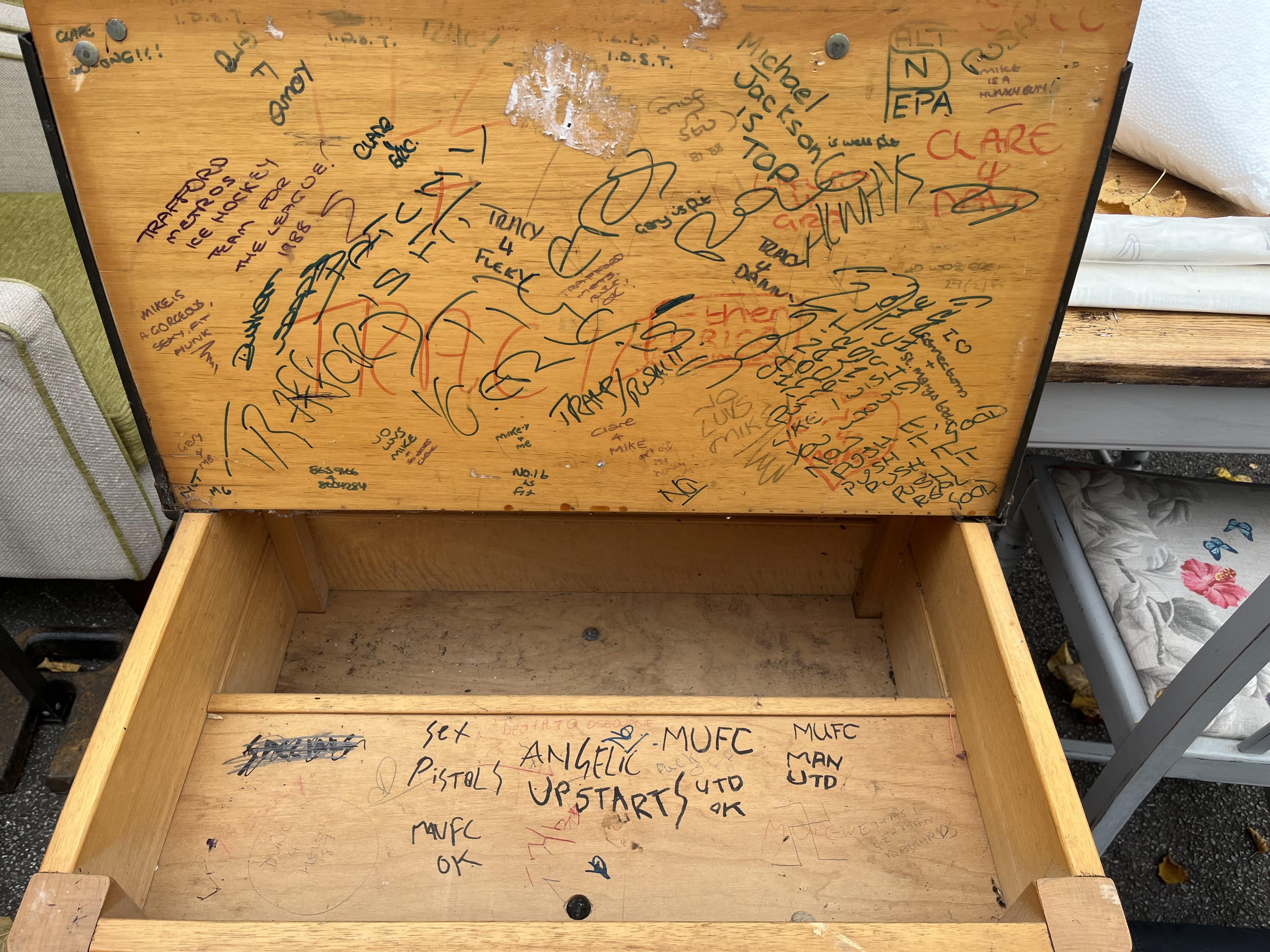 1. Would love to see a museum exhibit of desk graffiti like this through the decades. It’s not exactly high art but it’s a cool snapshot of people’s lives.