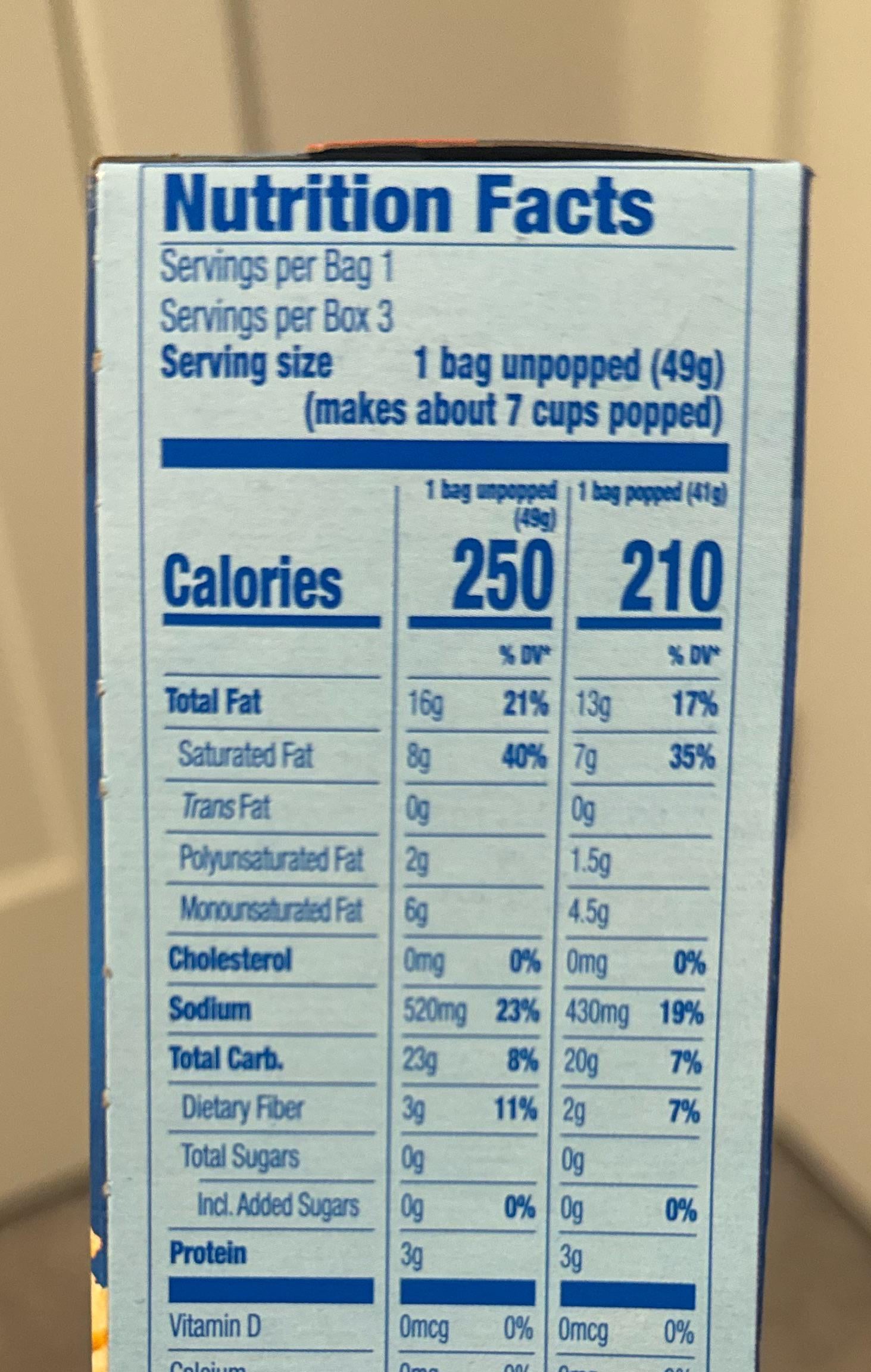 Including nutrition information for unpopped popcorn is a bit strange, as it’s rather difficult to eat that way…