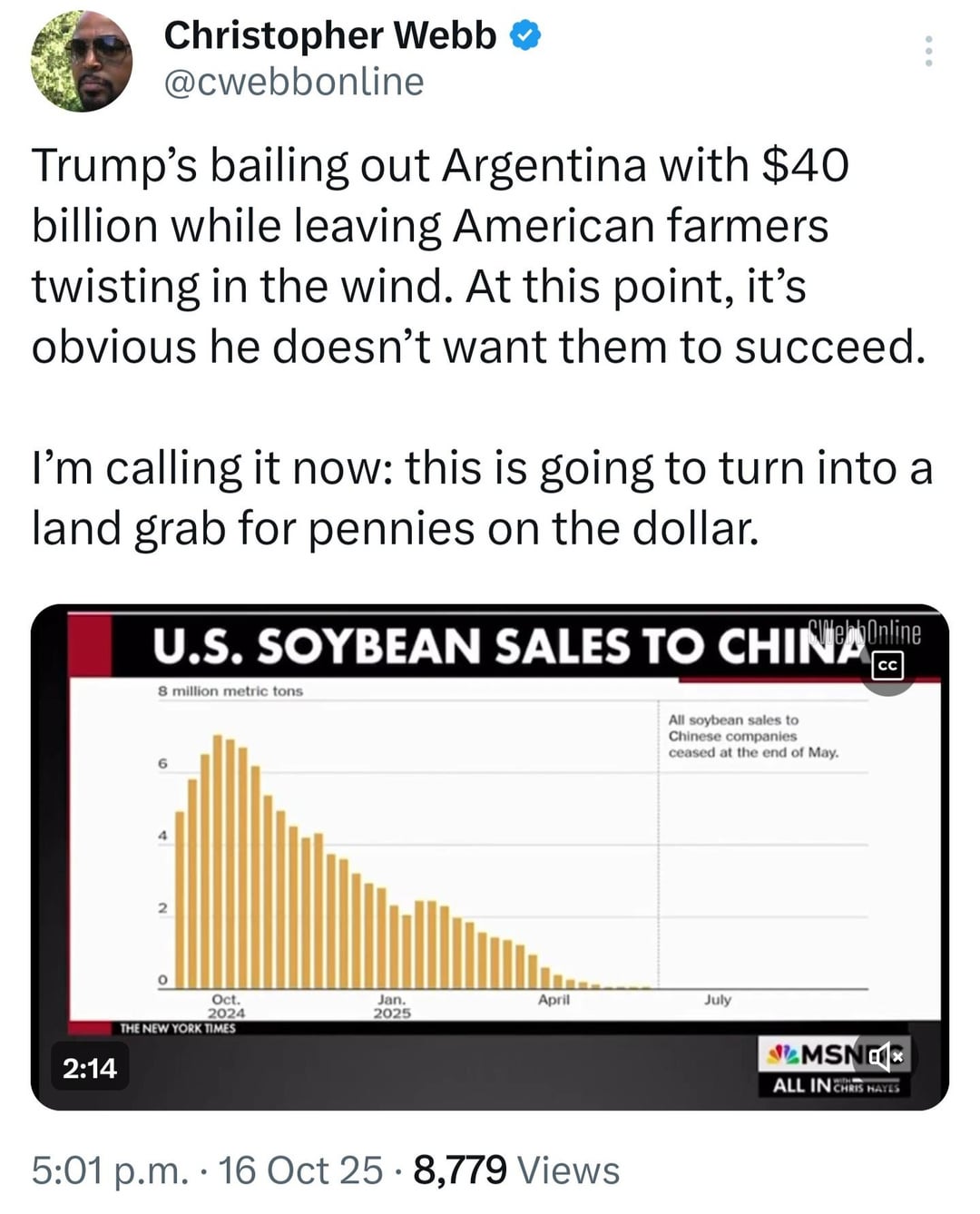 All the while china buys soybeans from argentina since they wont buy from the us anymore