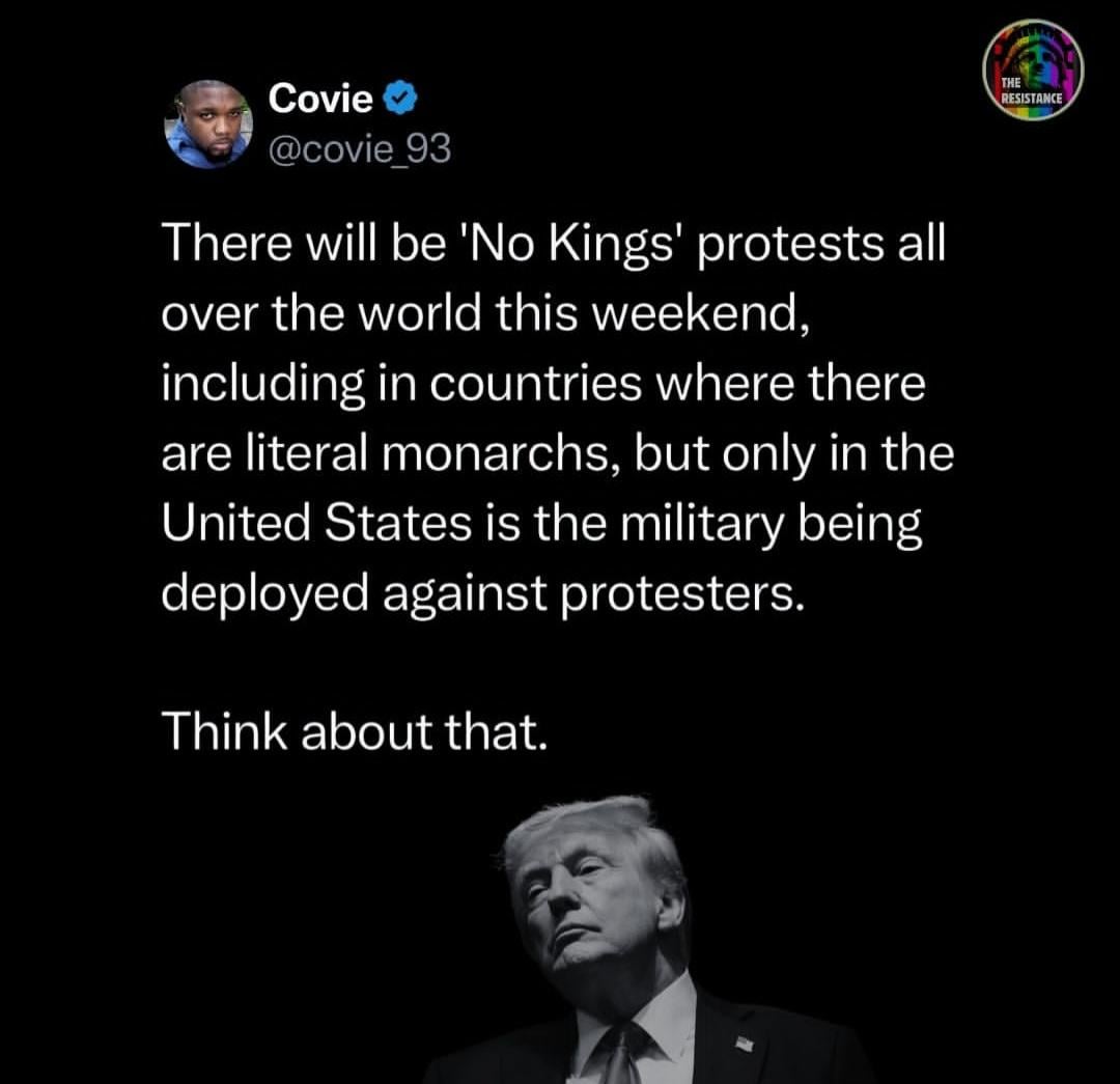 Whatever it takes to stop communism 🤷🏿. Whoever is funding the no kings is trying to become a king. I’m not falling for none of that shit.