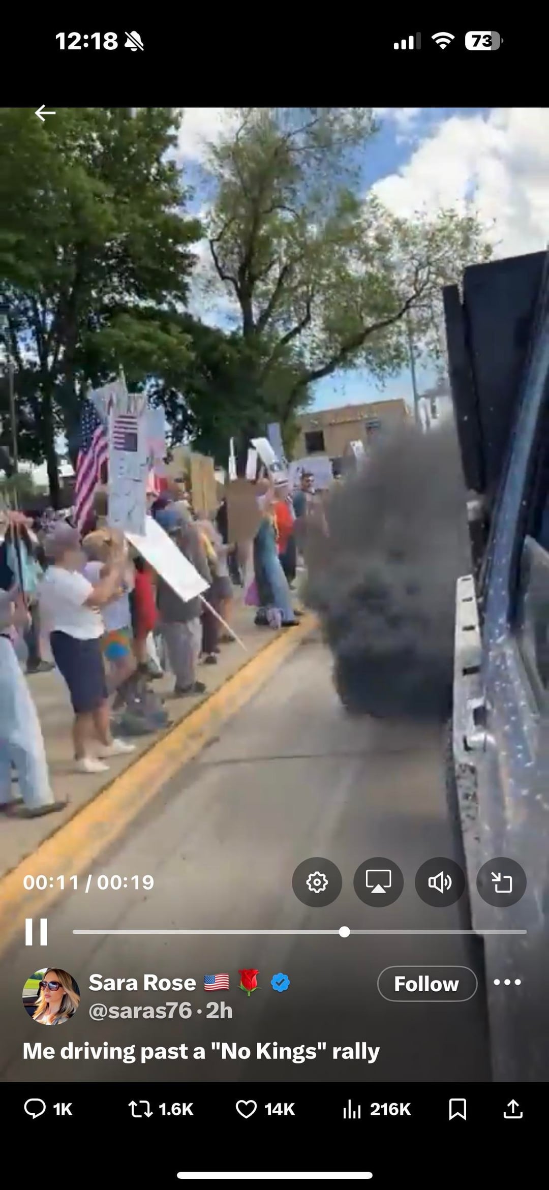 There was a dumbshit maga douche in a jacked up brodozer who rolled coal at our protest today as well. Everyone booed, then pointed and laughed at the numbskull. Aside from three or four immature maga cultists, it’s was probably 99% support from passers by.