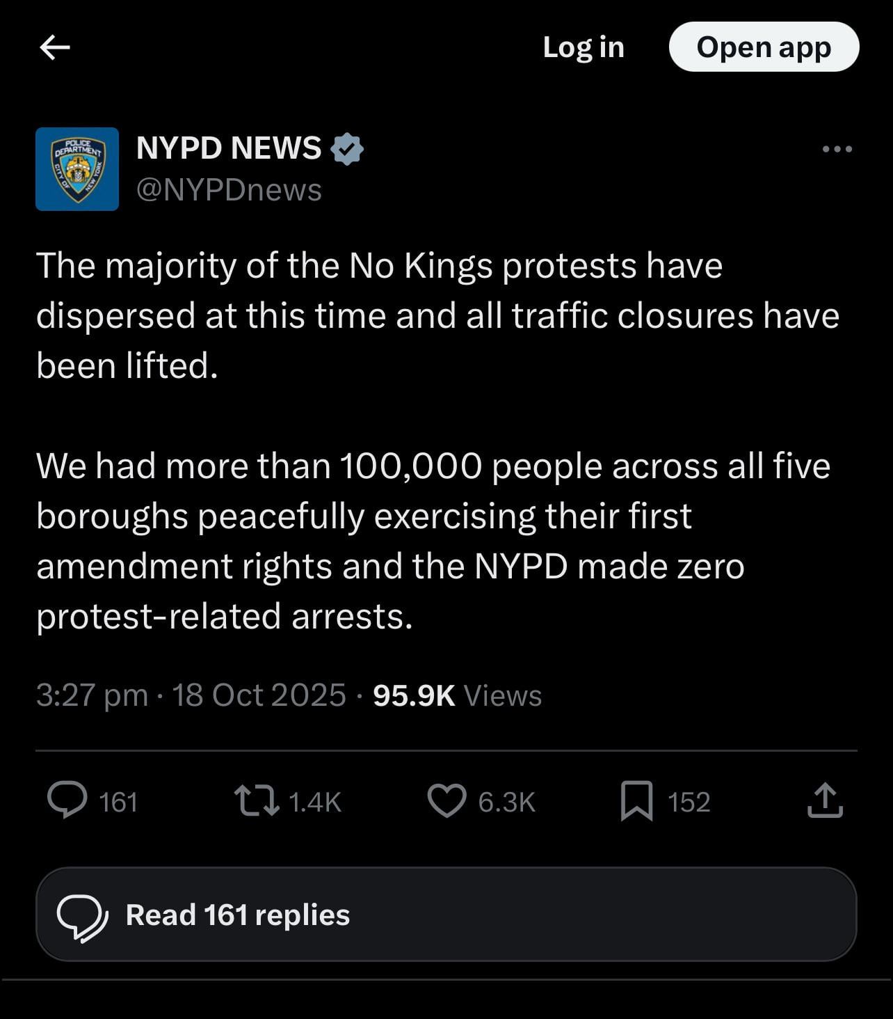 mangoserpent on October 18, 2025 9:29 pm If the cops are admitting 100,000 people, I am thinking way more than that.