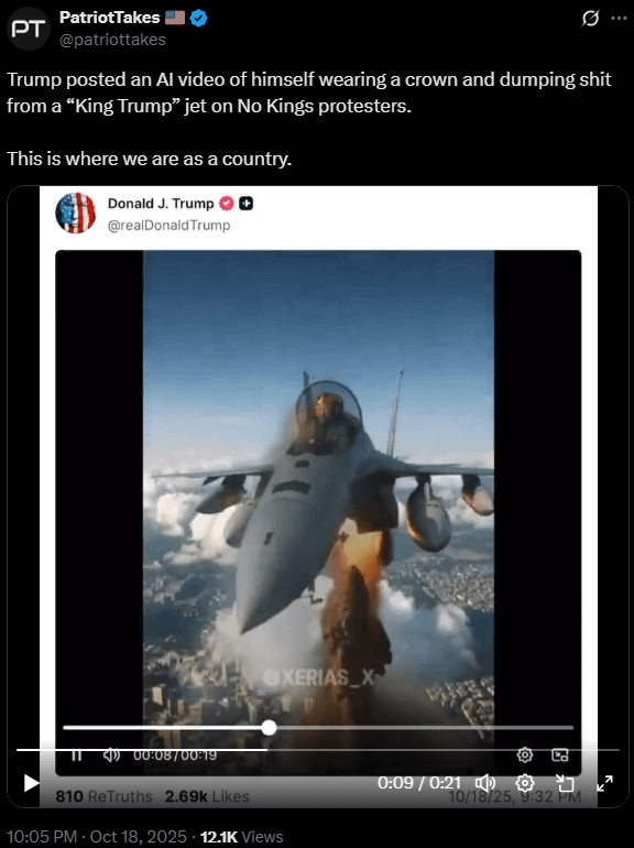 Trump is one feckless man. He is just upset about how well the No Kings protest turned out.
