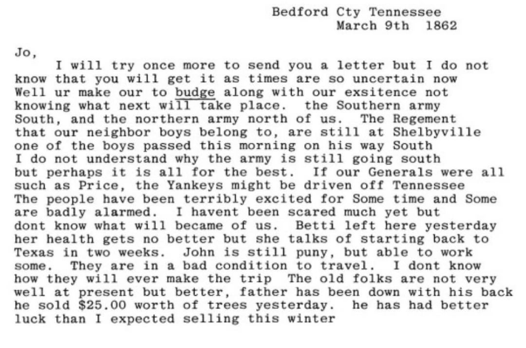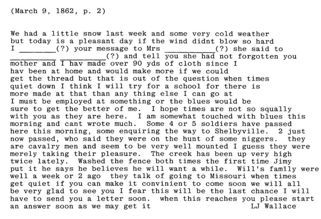 L. J. Wallace to Jo Wallace, March 9, 1862. Bedford City, Tennessee. UNT Digital library. by CryptographerKey2847