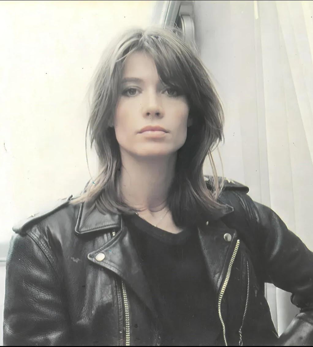A promotional postcard photo that was created by the French record label, Flarenasch – of the French singer-songwriter and style icon, Françoise Hardy, c. 1981. [1022 x 1132]
