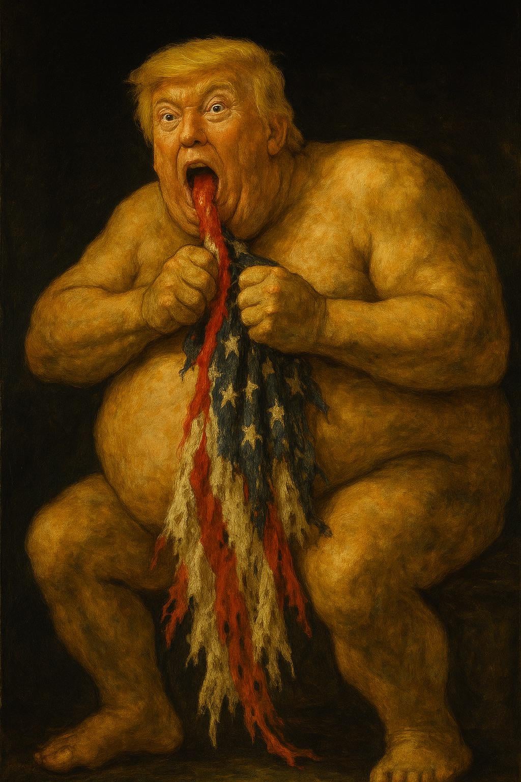 xdog12 on October 19, 2025 8:40 pm I think he should be eating lady liberty, something about this doesn’t evoke the emotions and drama of the original.
