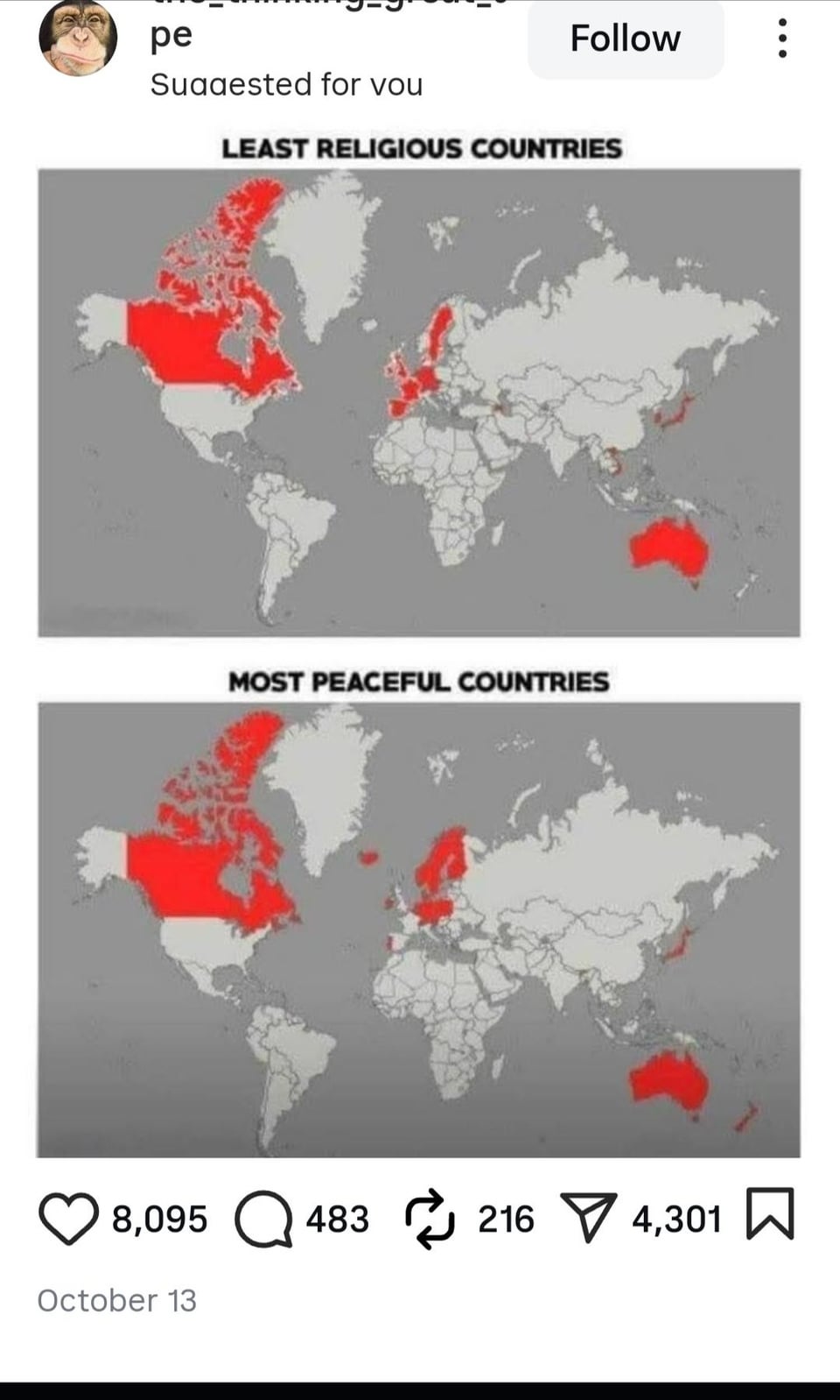 Kinda surprised Italy is not red for religious.