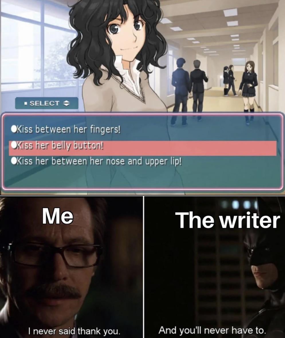 Lol, when the game dialogue is written by someone who’s never left their room. Who comes up with these options?! 😂