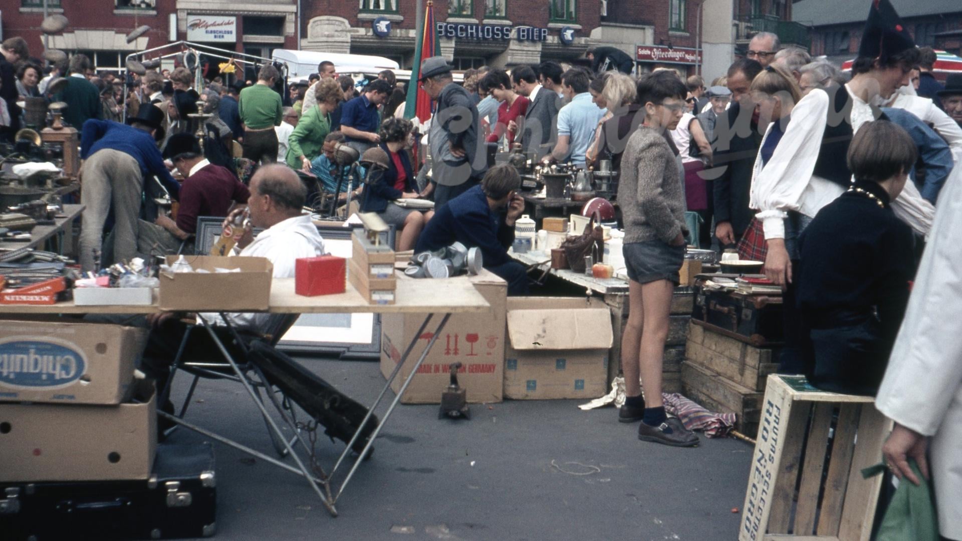 What bargains were available back then? Flea market in Hamburg, Germany, 1960s. [1920×1080]