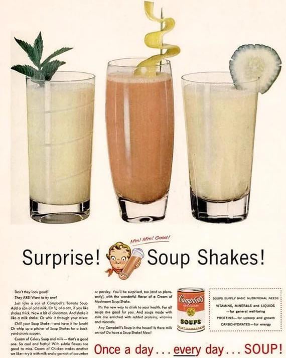I was hanging in there until I read the words “Cream of Mushroom Soup Shake.” What a time to be alive.