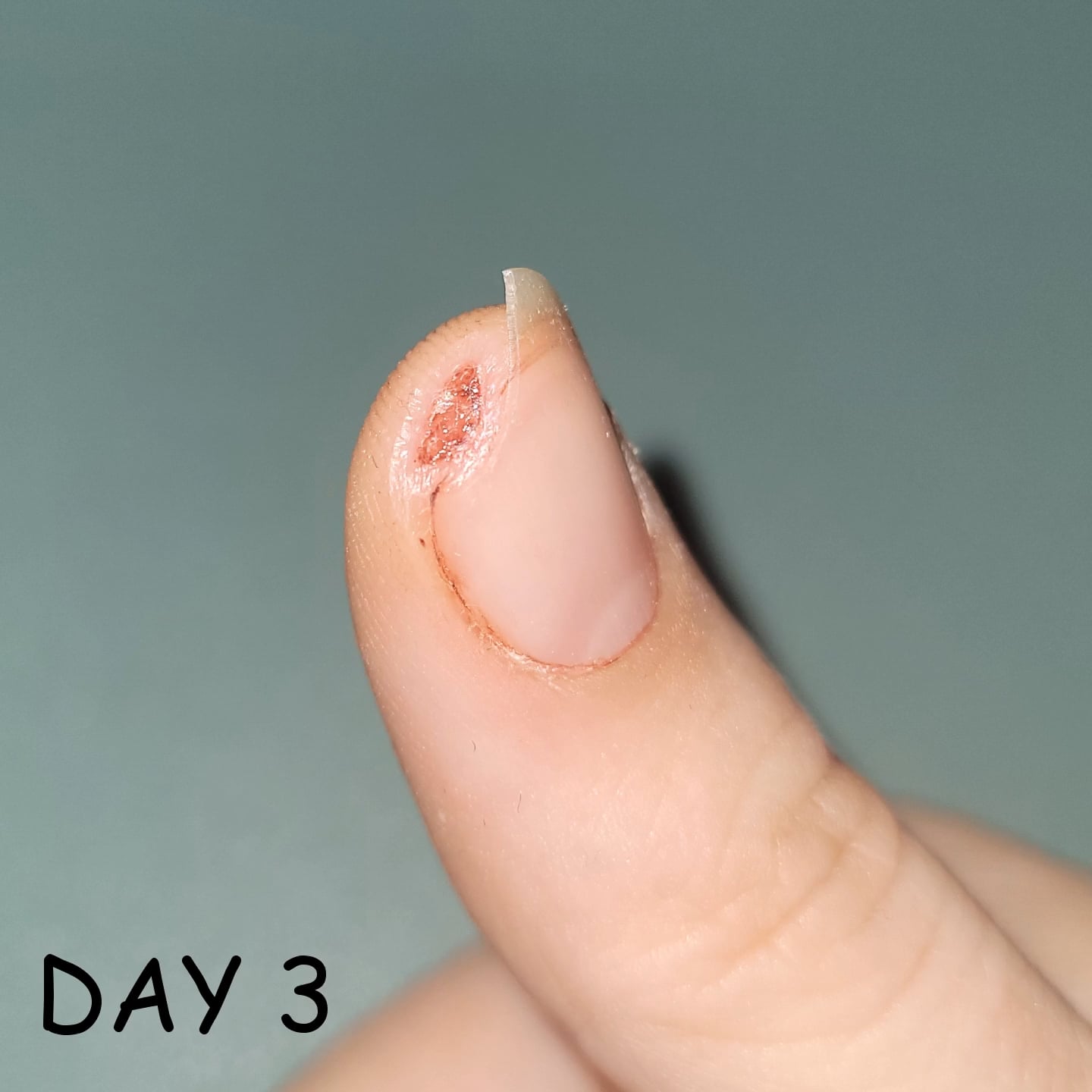 If I told you, you might be able to spot the tiniest change in fingerprint pattern. Besides that it’s invisible. Quite amazing. Lost a tiny bit of feeling in my left index tip.Â