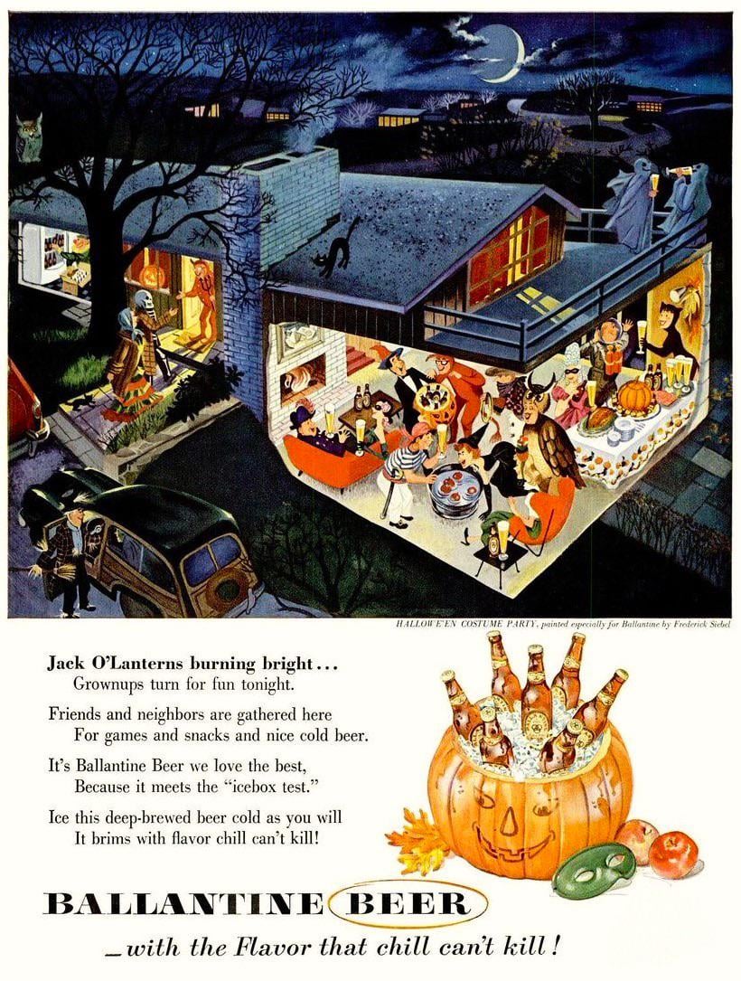 Ballantine Beer Halloween ad – artwork by Fritz Siebel (1953)