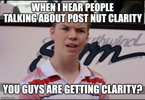 3. the clarity part refers not to a sense of peace, but rather an understanding that you were just really horny and realize it’s better that you didn’t send that text or hit up that girl who’s bad for you, etc