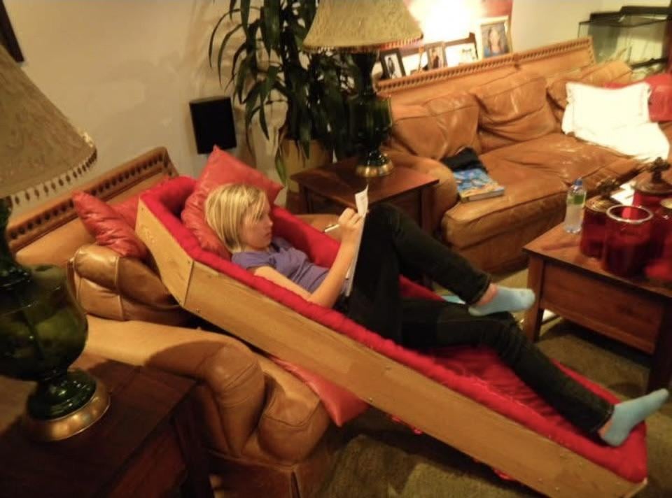 My dad built me this velvet-lined coffin since I was obsessed with Halloween and I used to do my homework in it (2010)