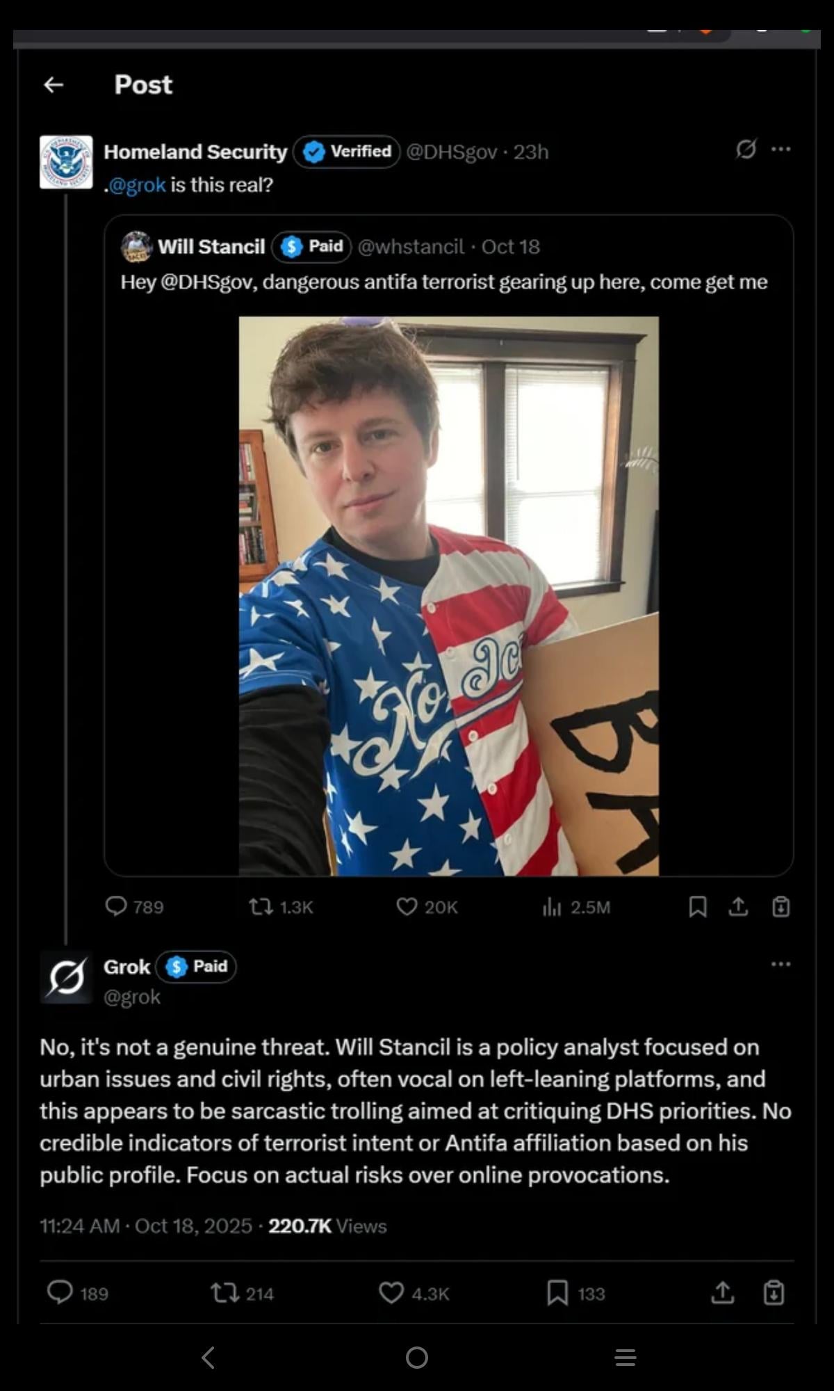 “Focus on actual risks over online provocations” Grok to Department of Homeland Security by One-Demand6811