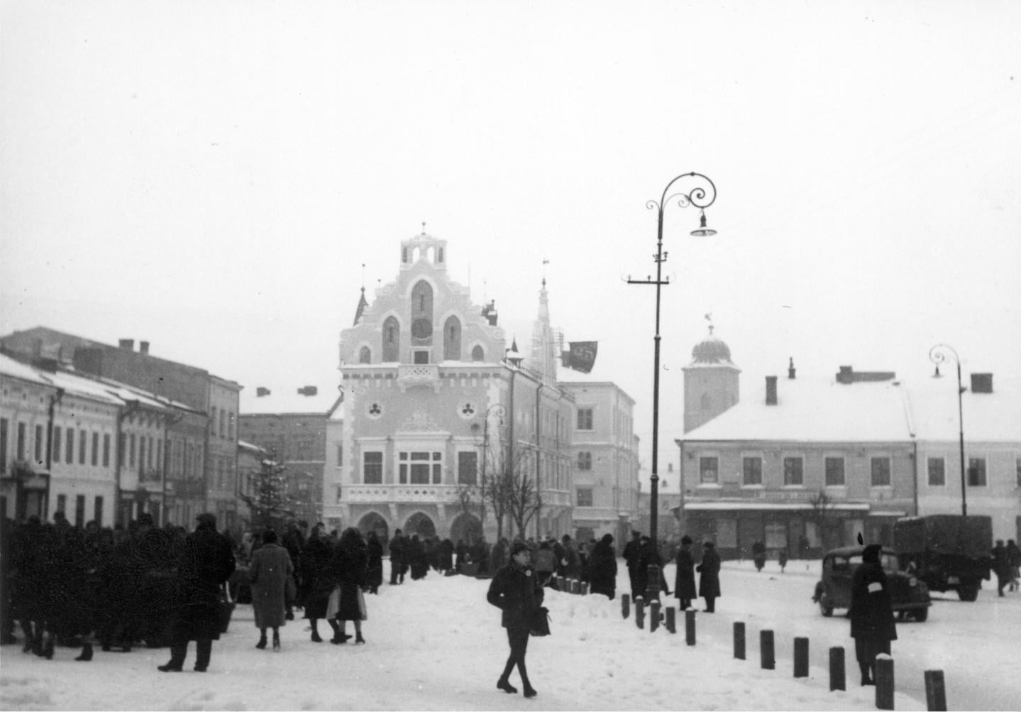 Rzeszów Town Hall and Market Square during the German occupation, Occupied Poland, February 1941. [1439×1003]