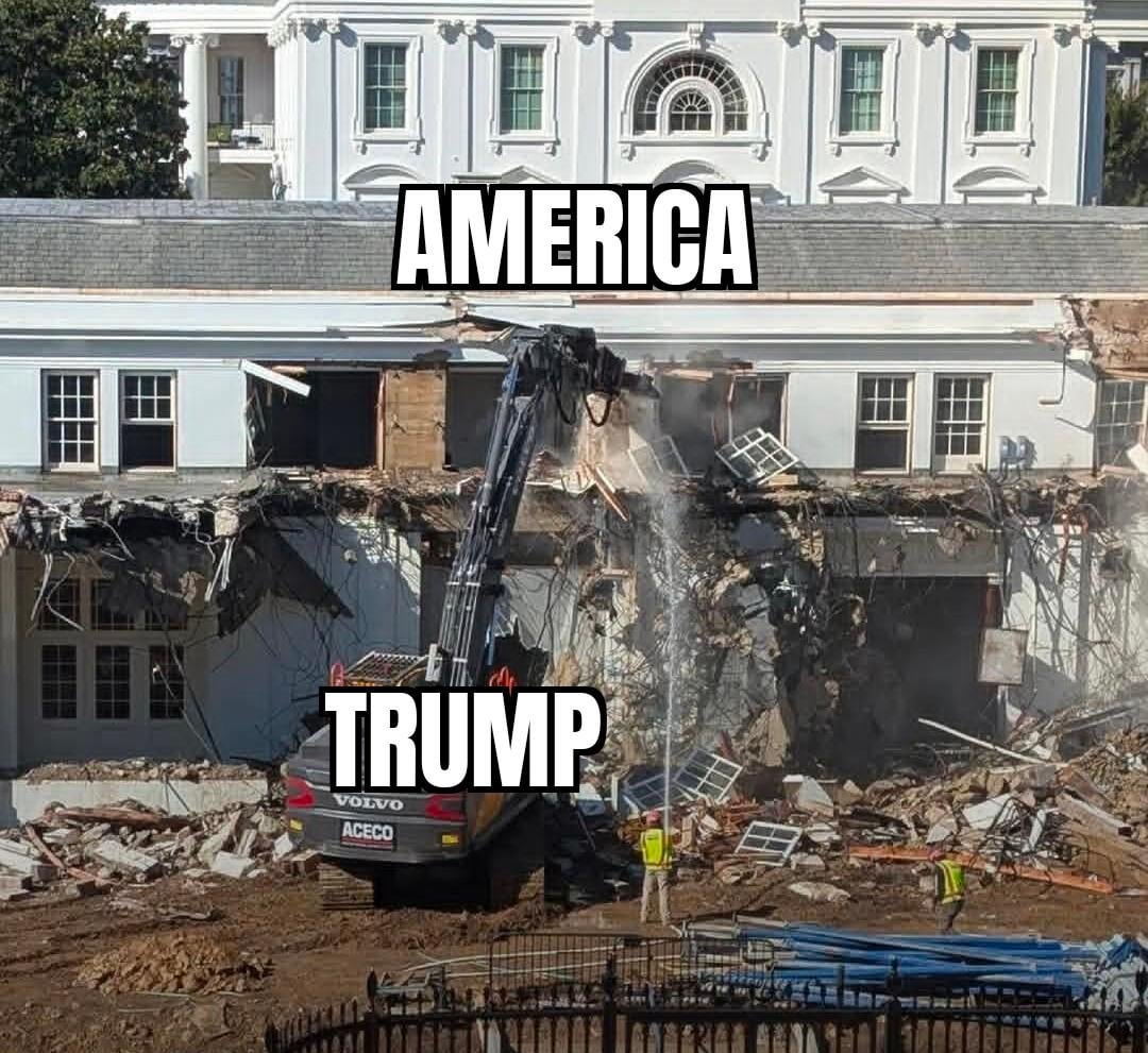 Direlion on October 21, 2025 1:14 pm Imagine being the dude driving this thing, just ripping down American history for Donald Trump.