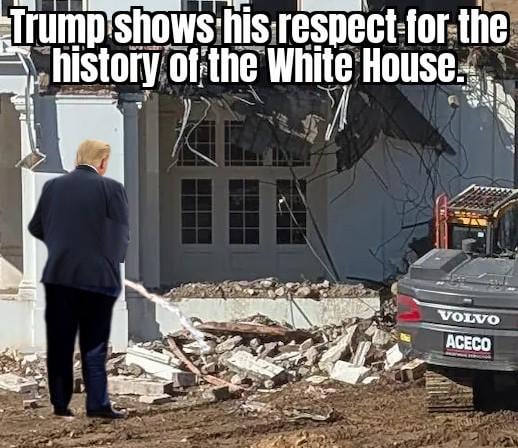 No Kings demo on Saturday, Trump starts tearing down the East Wing Monday. Is this his temper tantrum to hurt American citizens? sure feels like it.