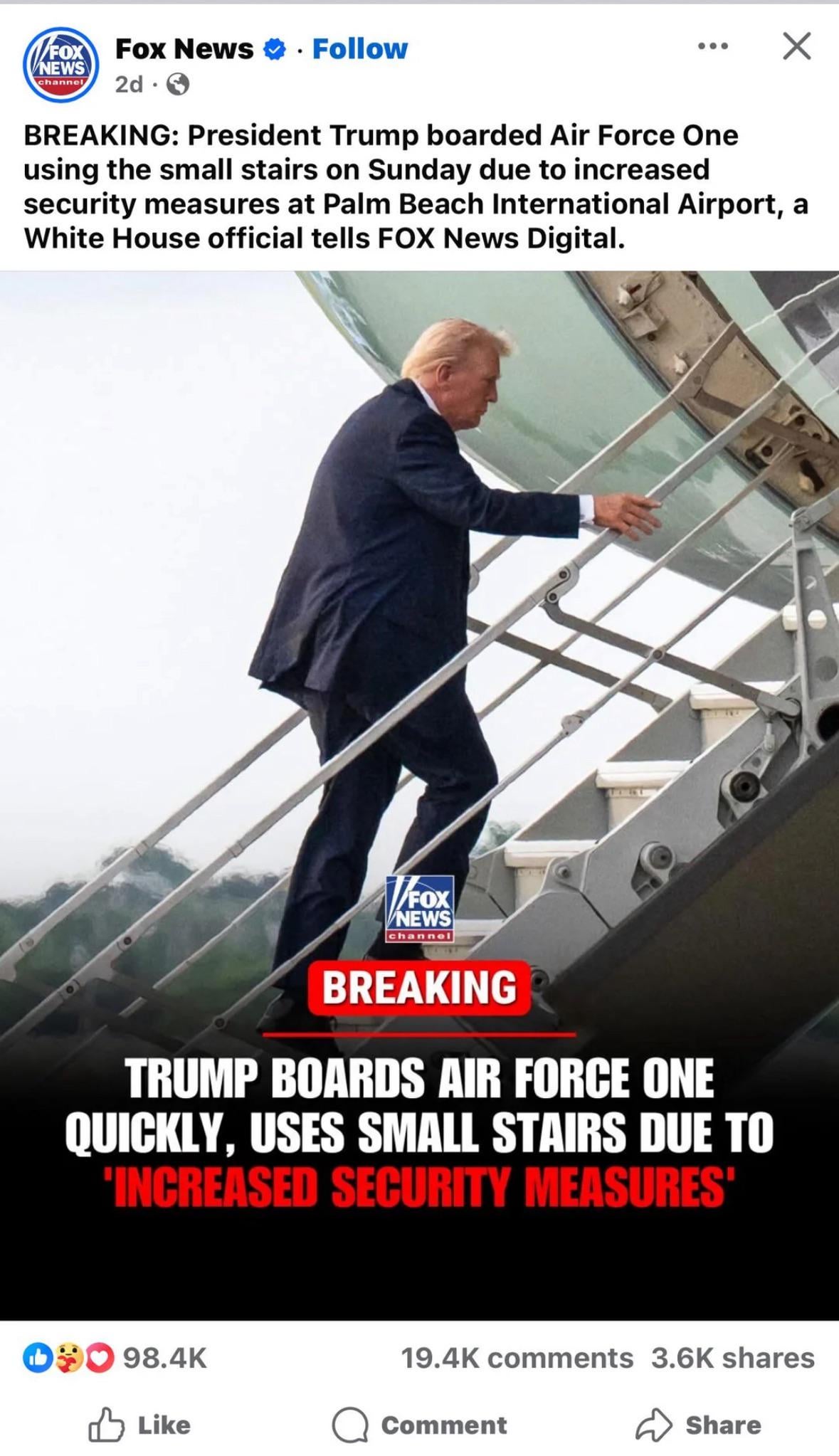 I wonder if the new air force one will have some sort of elevator, stairs are getting harder and harder for usa’s presidents 😂