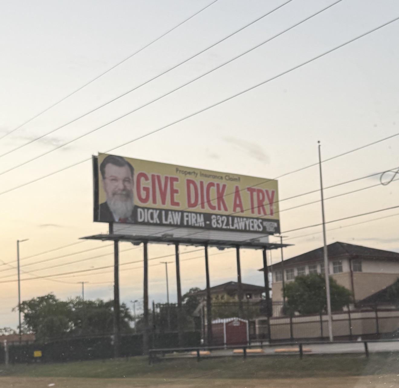 I live in Houston, I can confirm Dick Law Firm is real and so are his suggestive billboards. I see them on 59 north and south but they are elsewhere along the major highways.