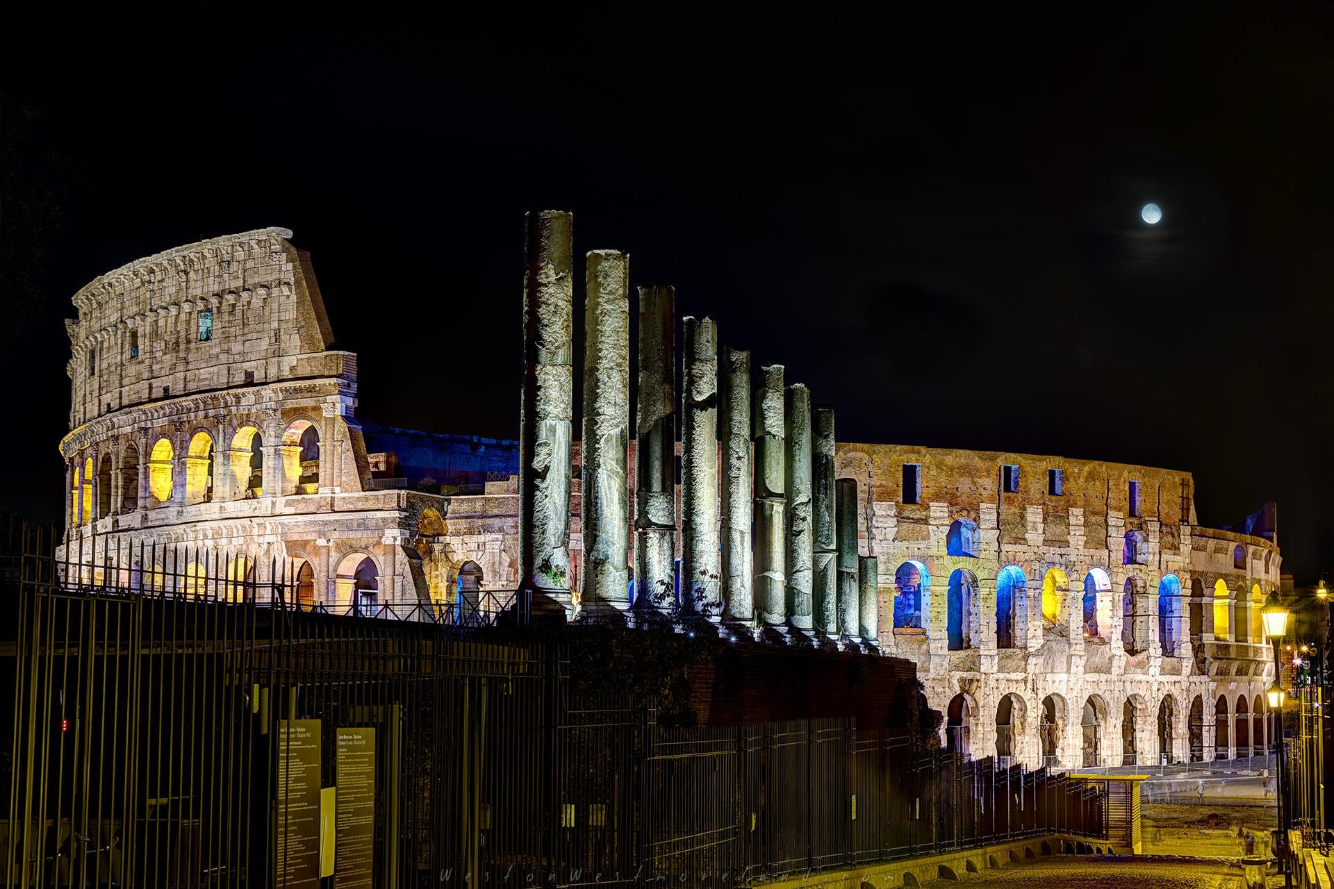 The Colosseum from the Via Sacra, across the columns of the Temple of Venus and Rome. The Via Sacra (Sacred Street) was the main street of ancient Rome, leading from the top of the Capitoline Hill, through some of the most important religious sites of the Forum, to the Colosseum… [1920×1280] [OC]