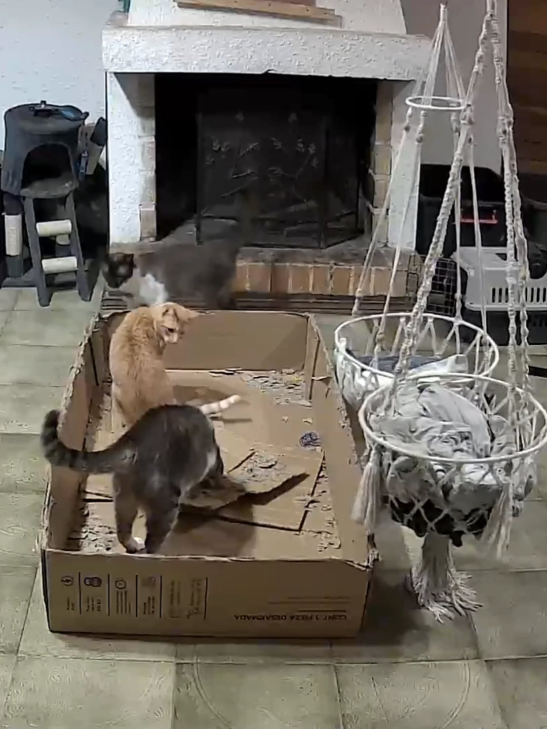 A few days ago, I posted a compilation of videos of the cats at my shelter using this box as a wrestling ring. It got moderately popular, and a lot of people suggested setting up a motion-detection camera to watch them even when I’m not in the room. In just a few days, I’ve seen them do all kinds of crazy things like this (along with lots of playful fights that I post on r/BattleBoxCats)