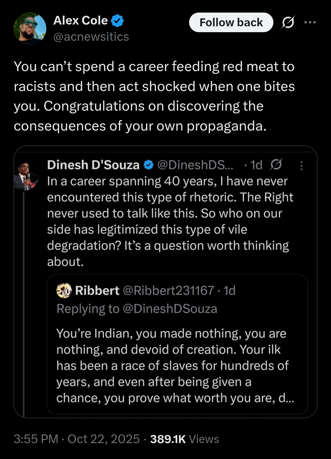 You’re a token Dinesh, and tokens get spent. Get fucked.