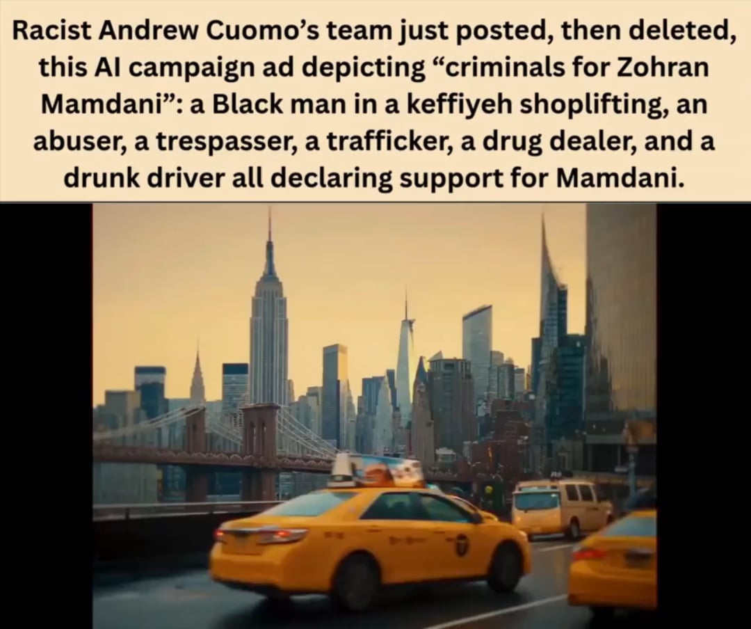 Oh this isn’t just AI slop, its blatant fucking racist propaganda from Andrew Cuomo the sexual predator.