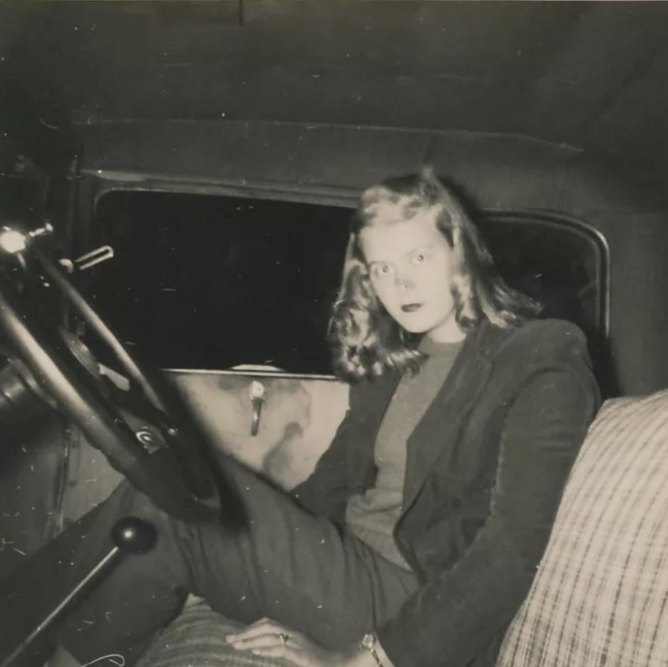 Young lady inside a car (not sure the model) by her look she wasn’t expecting the photo, circa 1940s. Maybe date night? by Electrical-Aspect-13