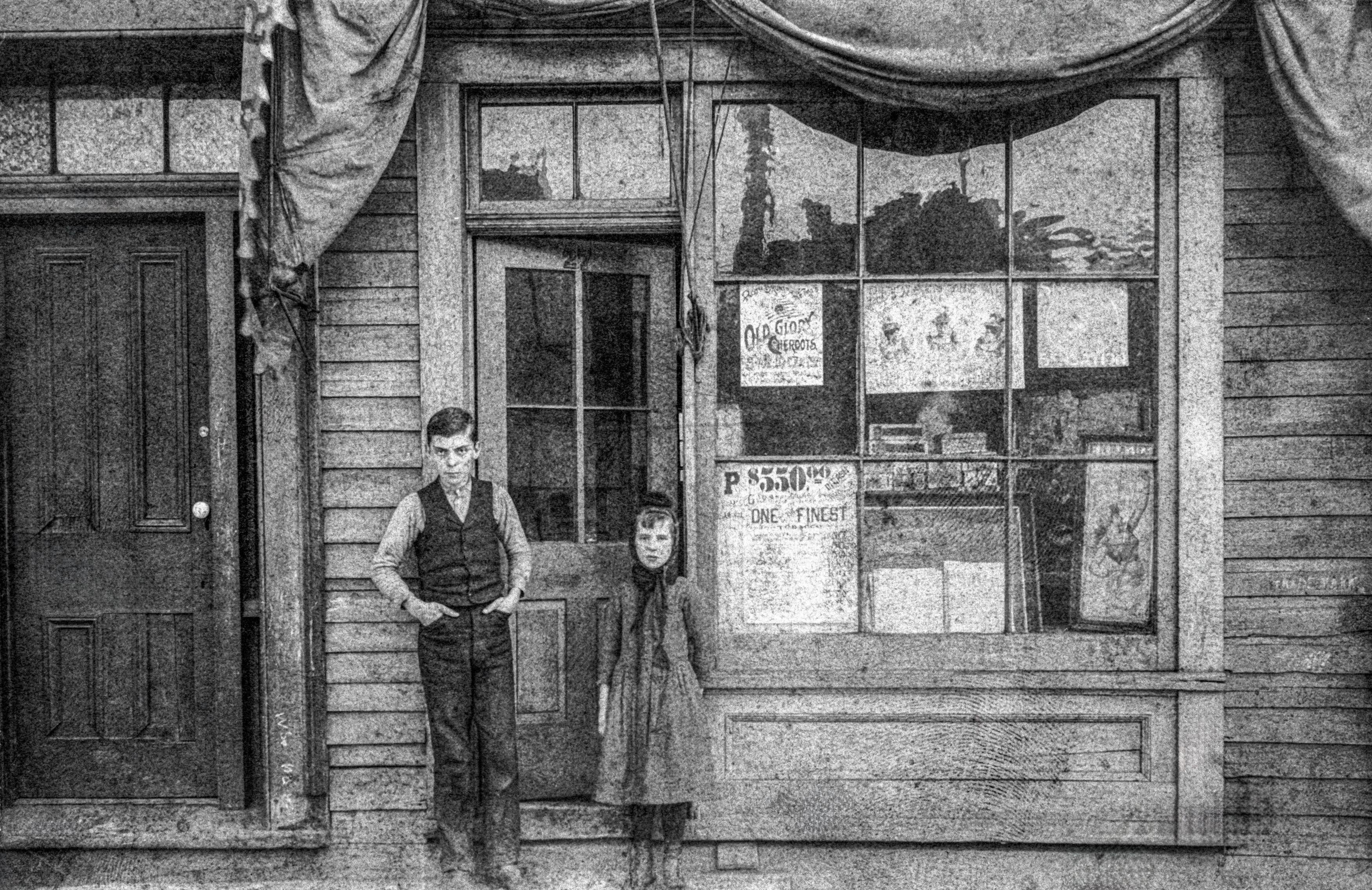 My maternal great grandma and her older brother standing outside the family shop located at 27 N. Halstead St. in Chicago around 1890. by ecobot