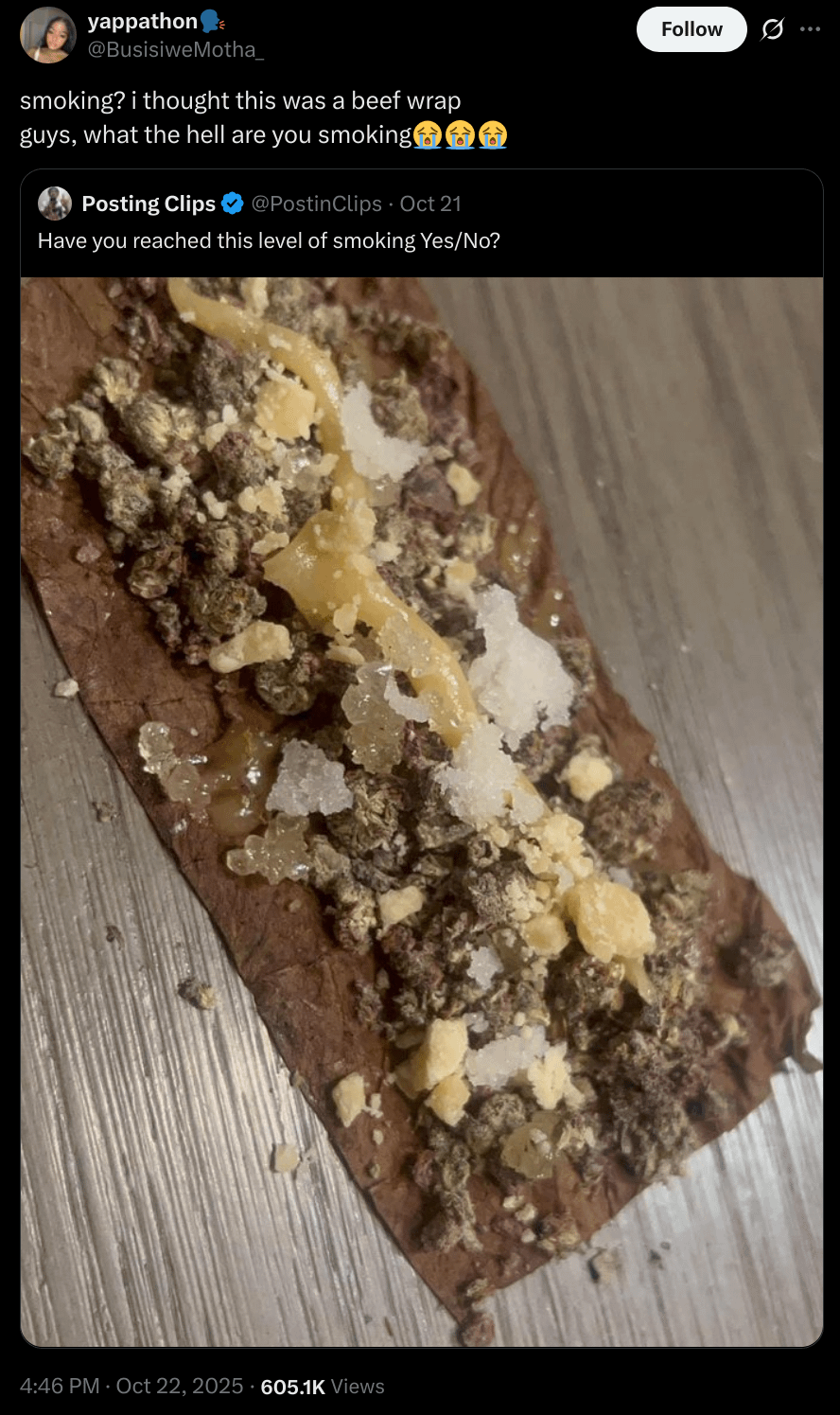 In all seriousness, if you need a chipotle XXL burrito of a blunt to get high just give it a fucking break for a while.