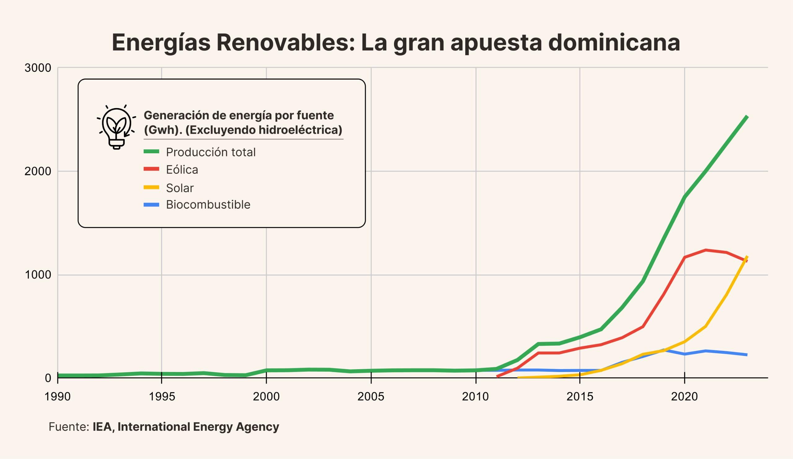 Source: [IEA](https://www.iea.org/data-and-statistics/data-tools/energy-statistics-data-browser?country=DOMINICANR&fuel=Energy%20supply&indicator=ElecGenByFuel)