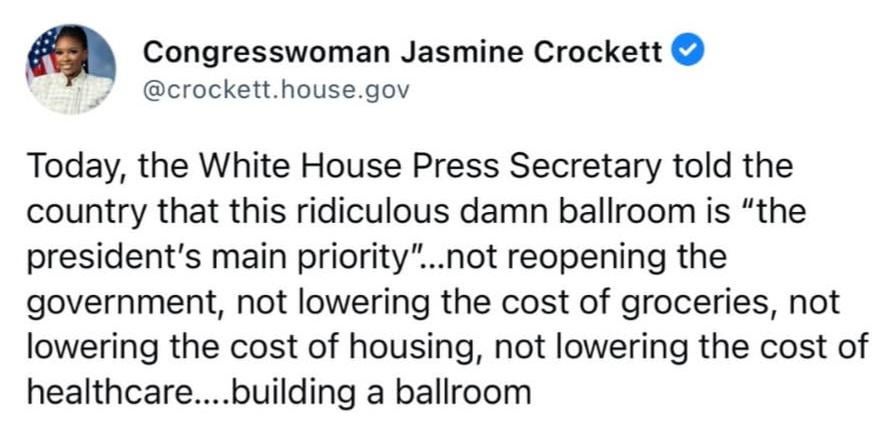 parents are going to struggle with feeding their families since snap isnt being distributed in november, but at least trump is gonna steal tax money to fund a disgusting ballroom