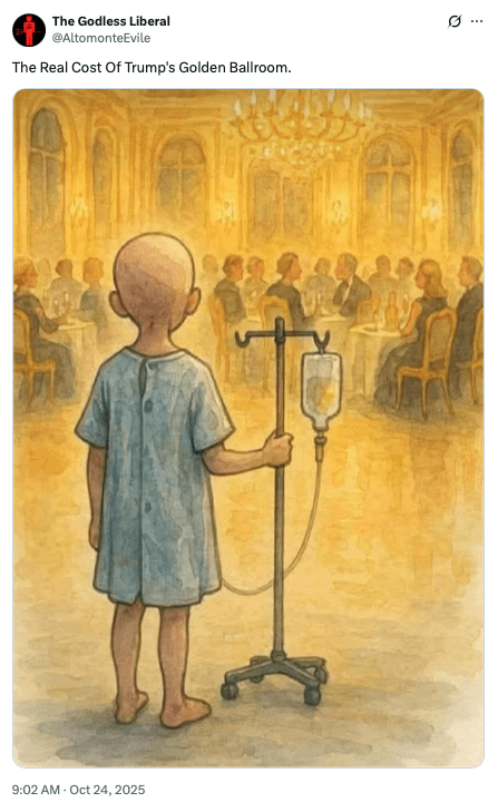 mcribzyo on October 24, 2025 2:43 pm Honestly hope something happens to that ballroom that I can’t say.