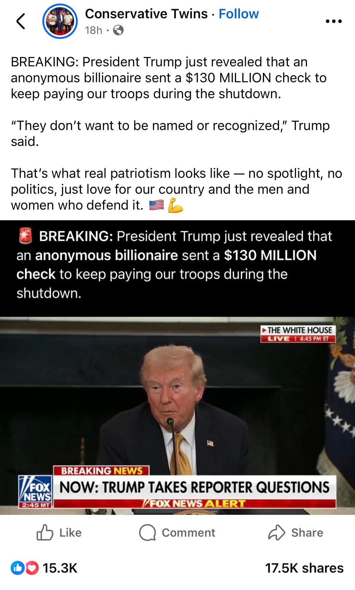 ***IF*** this actually happened, we still need to know who. and 130 million is NOTHING compared to the DoD payroll of about $300 billion. if anyone is getting paid from this, it’s some corrupt generals.