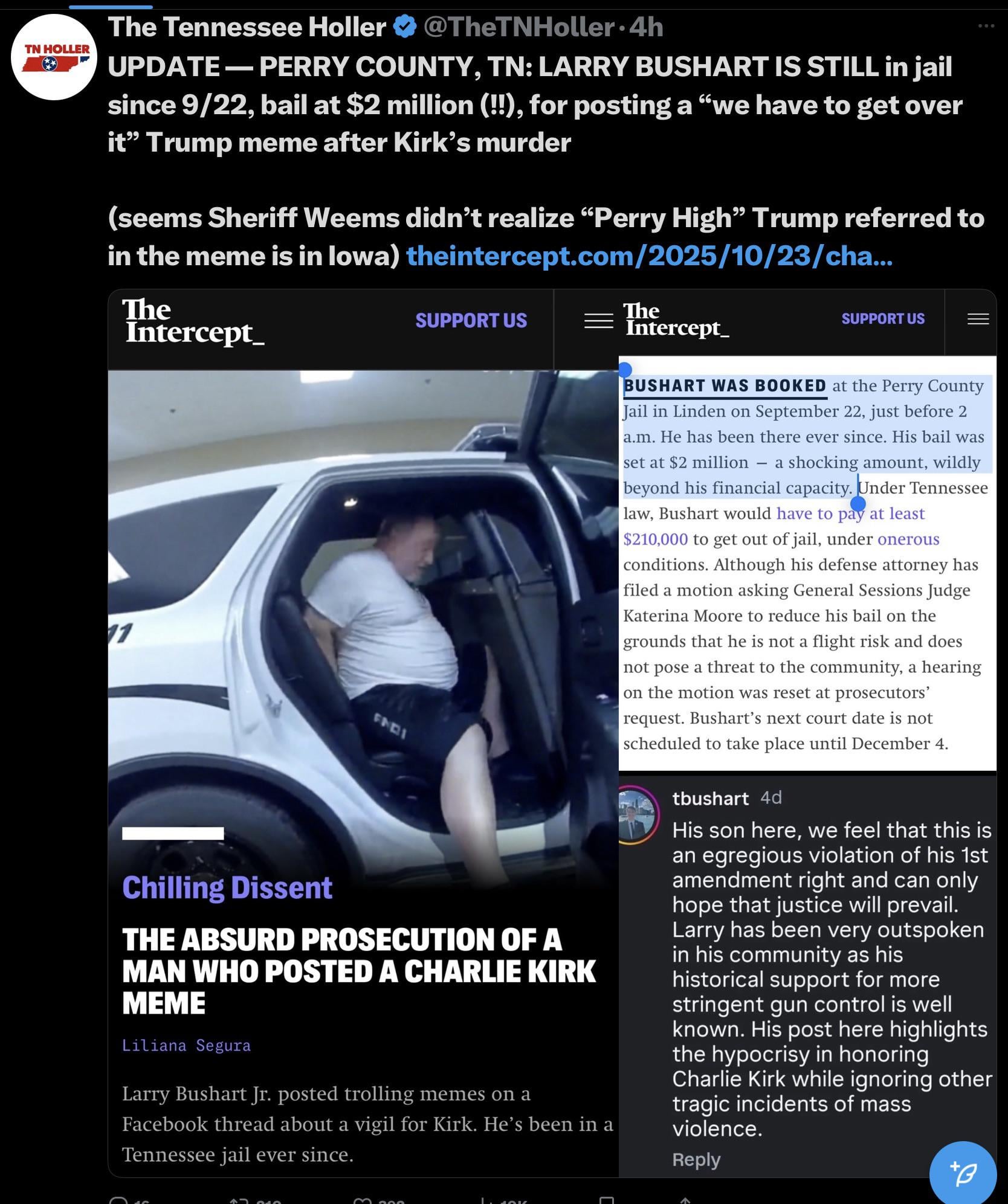 “Bushart, a retired police and corrections officer and sheriff’s deputy, has been in jail since he was booked in the early-morning hours of Sept. 22”
